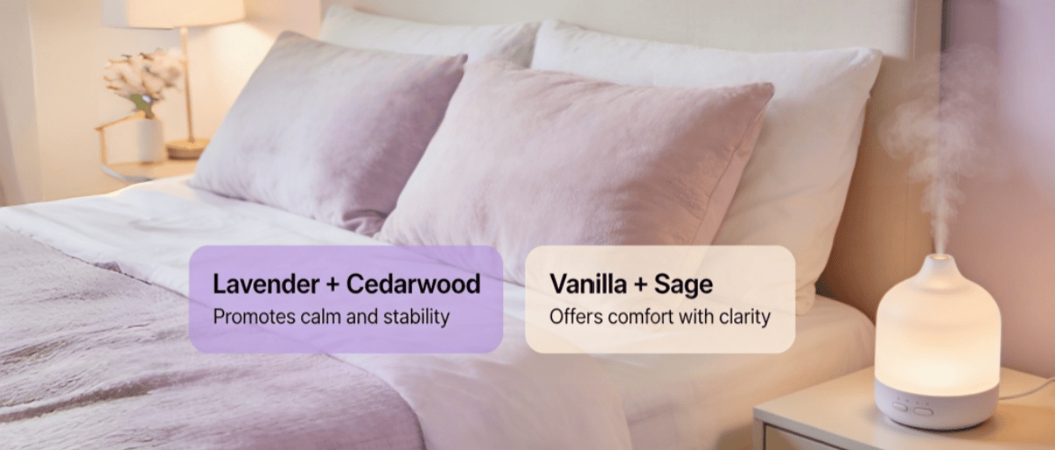 Smart scent pairings in the bedroom are more effective than single notes. They work together to deepen relaxation. Lavender paired with cedarwood promotes calm and stability. Vanilla paired with sage offers comfort with clarity. These combinations create a multi-layered, tranquil environment that is highly conducive to sleep.
