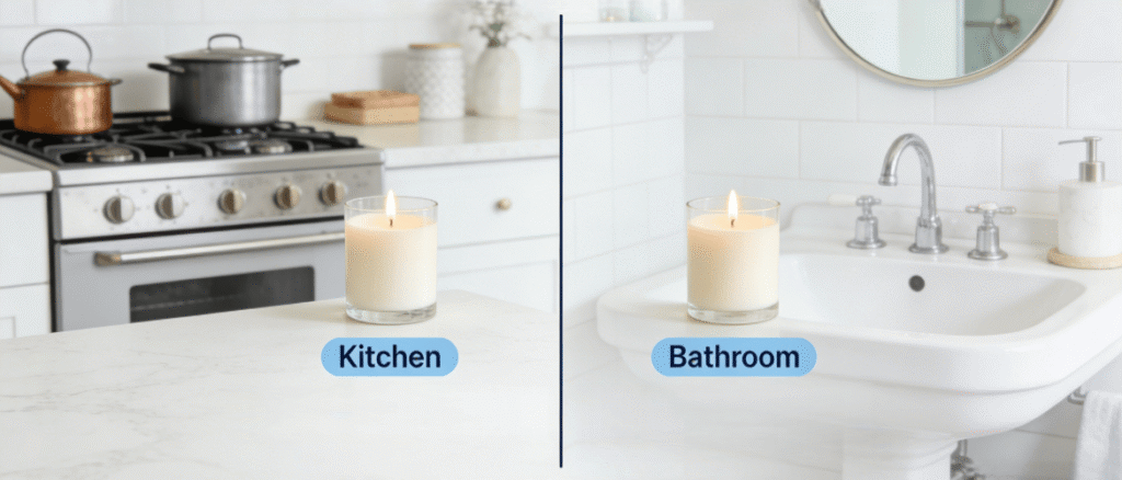 Important Practical Notes: Always practice safety. Keep candles away from sinks, showers, and active stovetops. Due to the typically smaller size of bathrooms, a votive or small jar candle is usually perfect. In kitchens, a standard jar works well. The goal is a subtle transformation, not an intense fragrance cloud.