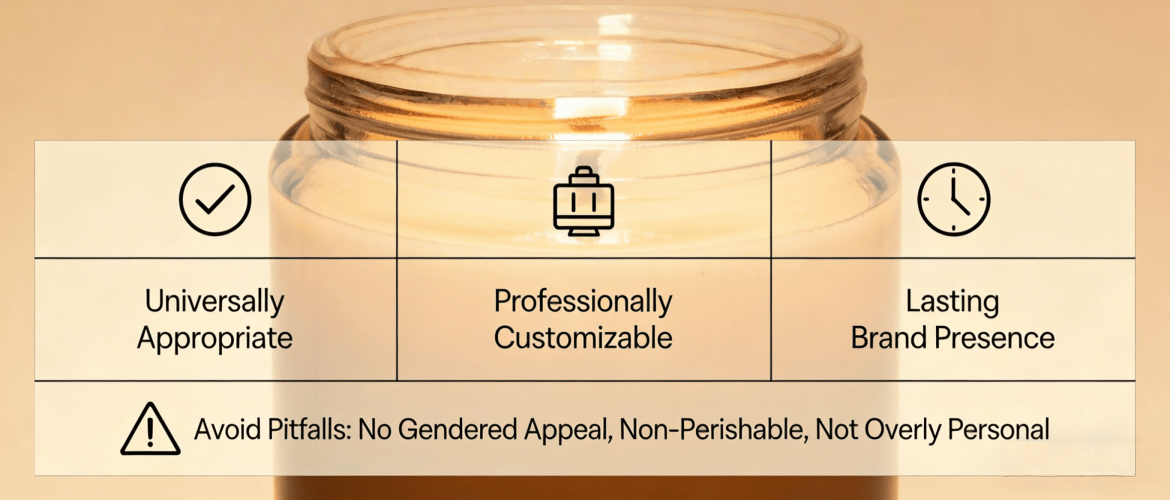 Scented candles succeed as B2B gifts because they’re universally appropriate, professionally customizable, and offer lasting brand presence. They avoid gendered, perishable, or overly personal gift pitfalls while providing ongoing brand visibility.