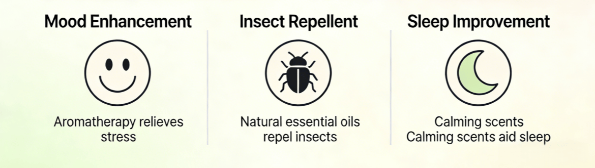 | Event Venues | Around food stations, gathering areas | Citronella, Lavender, Rosemary |