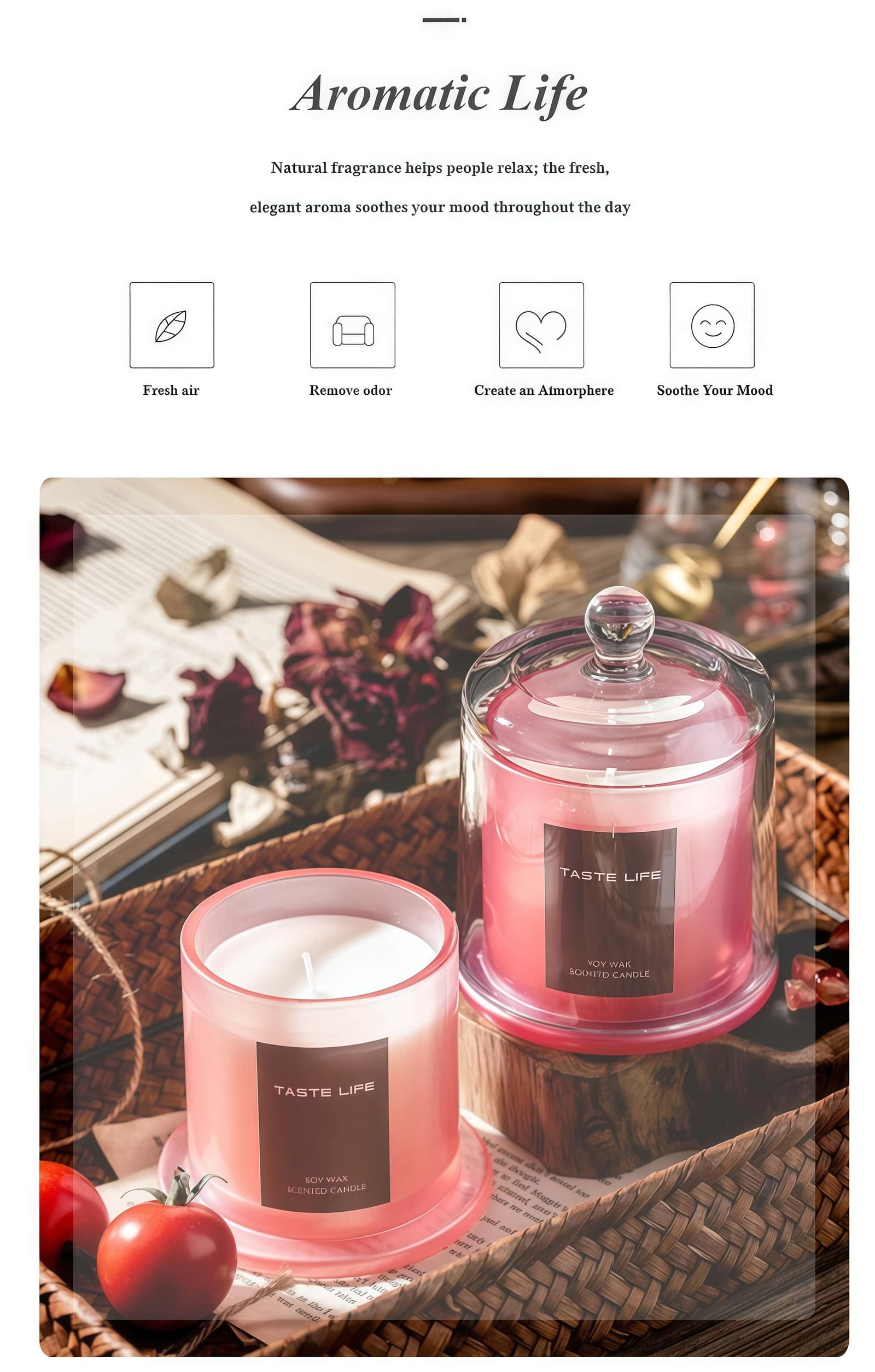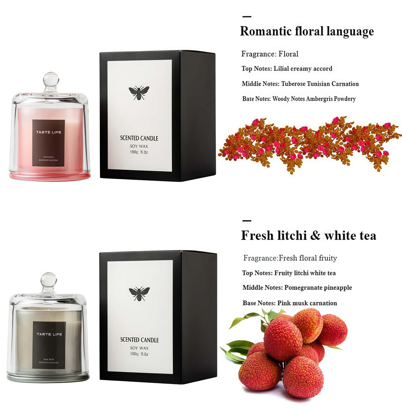 We blended classic bell-jar inspiration with contemporary design to create this Fruity Floral Scented Candle—a piece that feels both timeless and modern. Its crystal-clear glass dome wraps elegantly around the inner colored vessel, creating a captivating “jar-within-a-jar” visual depth, which beautifully frames the vibrant, fruity-floral essence within.