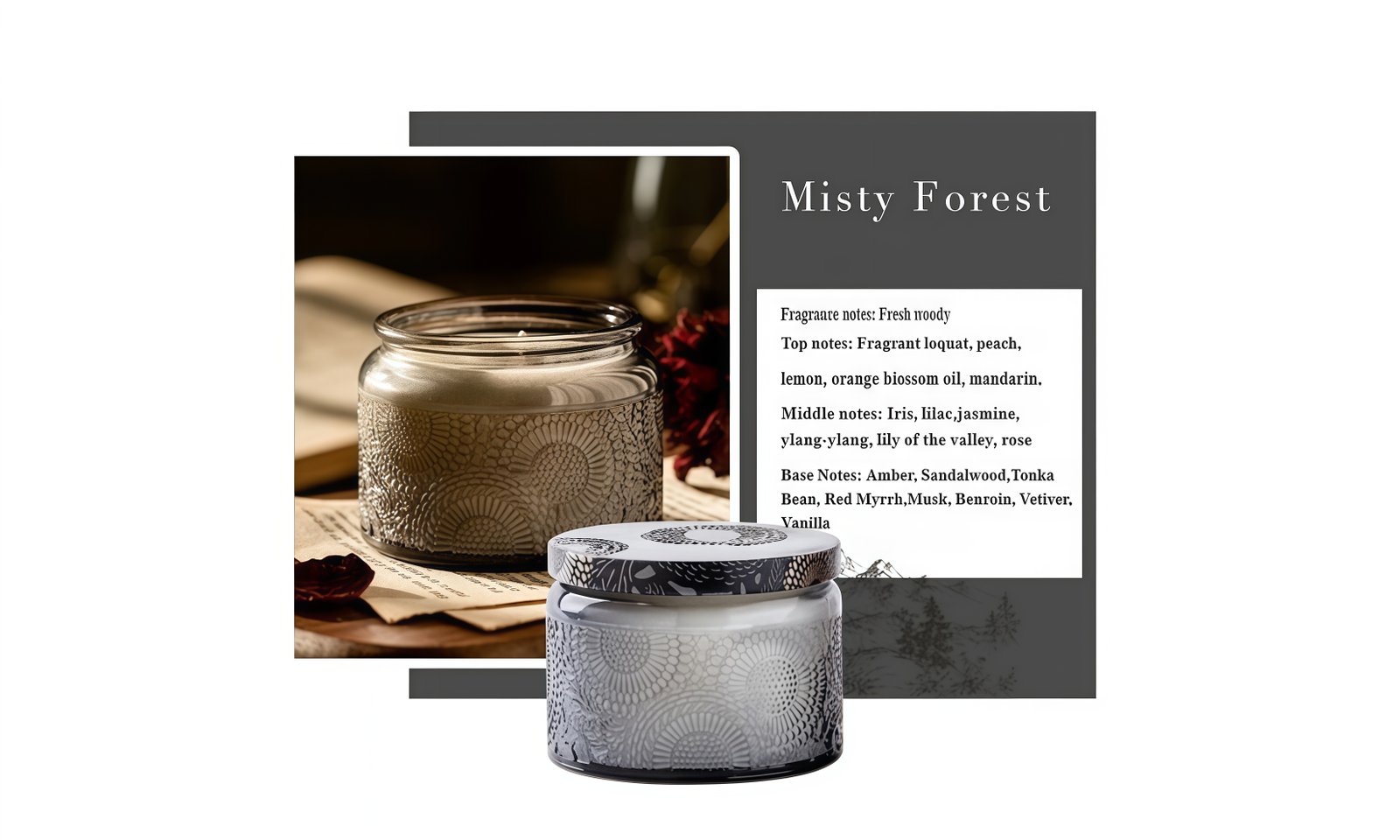 | Gray | Misty Forest | Fragrance Notes: Fresh Woody Top Notes: Coriander, Peach, Bergamot, Neroli, Tangerine Heart Notes: Iris, Lilac, Jasmine, Ylang-Ylang, Lily of the Valley, Rose Base Notes: Amber, Sandalwood, Tonka Bean, Myrrh, Musk, Benzoin, Vetiver, Vanilla |