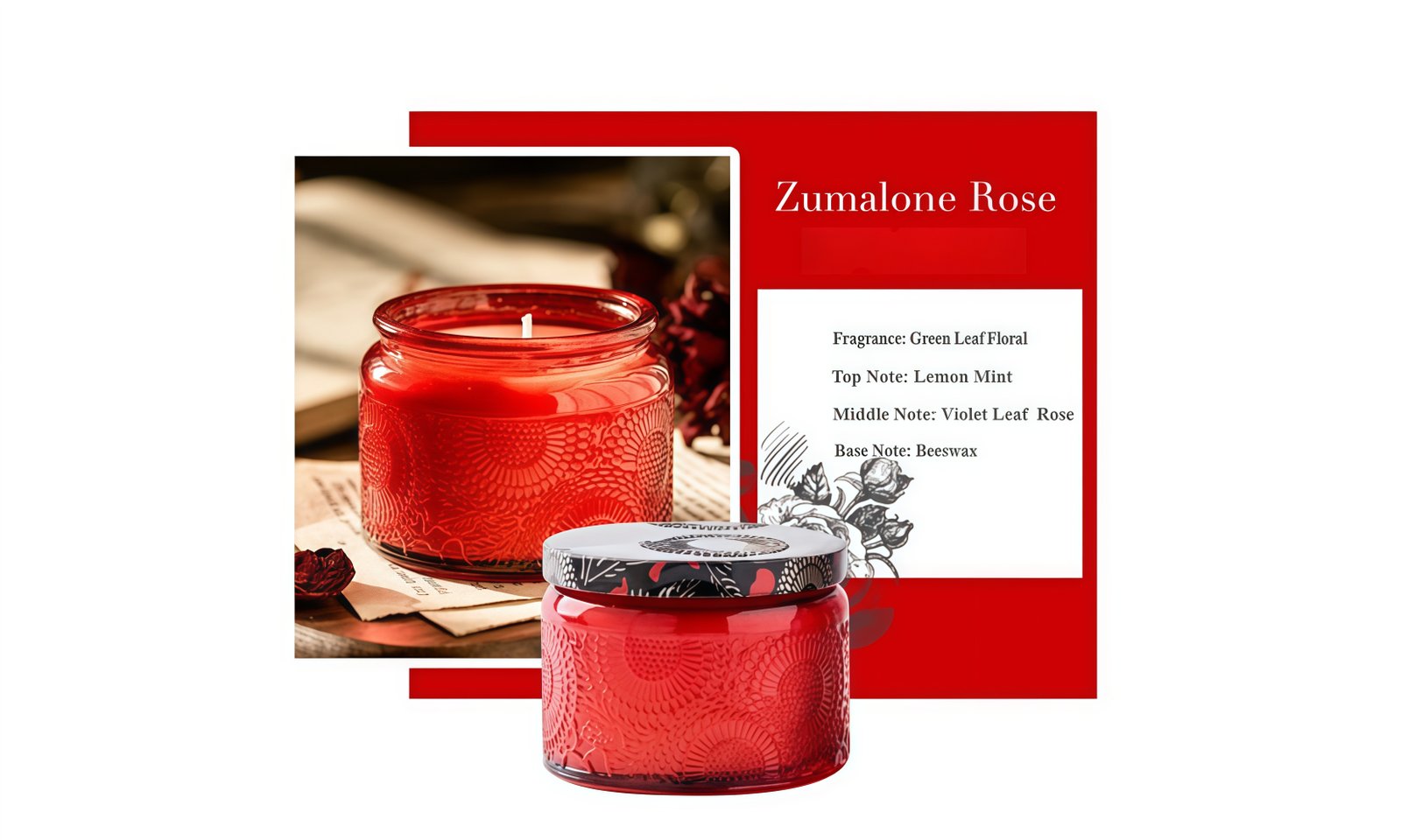 | Red | Zumalone Rose | Fragrance Notes: Green Leaf Floral Top Notes: Lemon, Mint Middle Notes: Violet Leaf, Rose Base Notes: Beeswax |