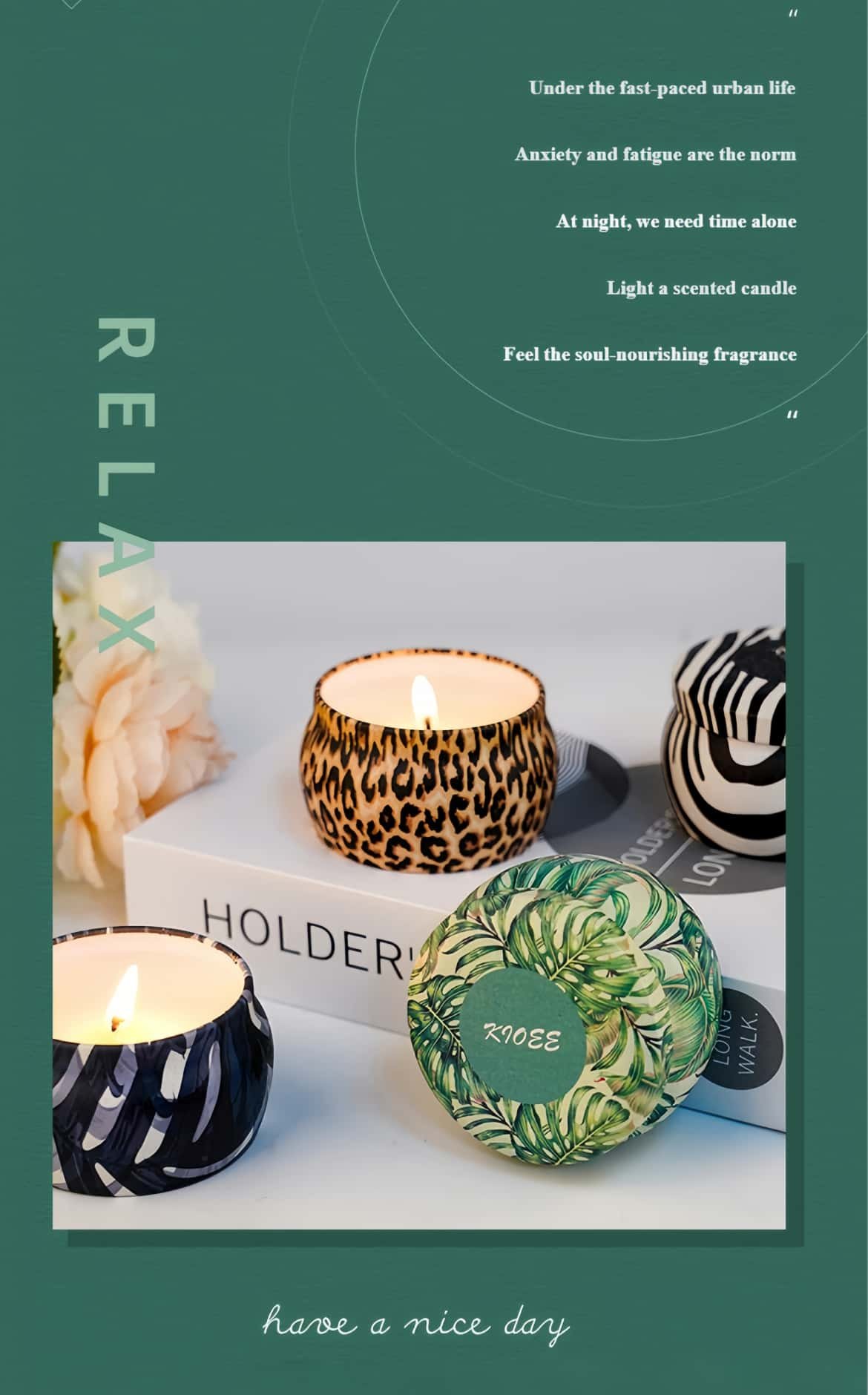 Each candle in this Relaxing scented candle set uses 100% pure plant-based soy wax​ and natural fragrances. The plant-derived wax burns cleanly and evenly, while the pure essential oils ensure a gentle, lasting scent release—nurturing both well-being and our shared environment.