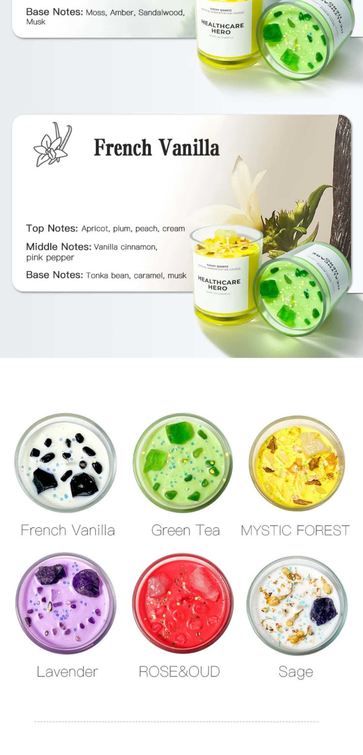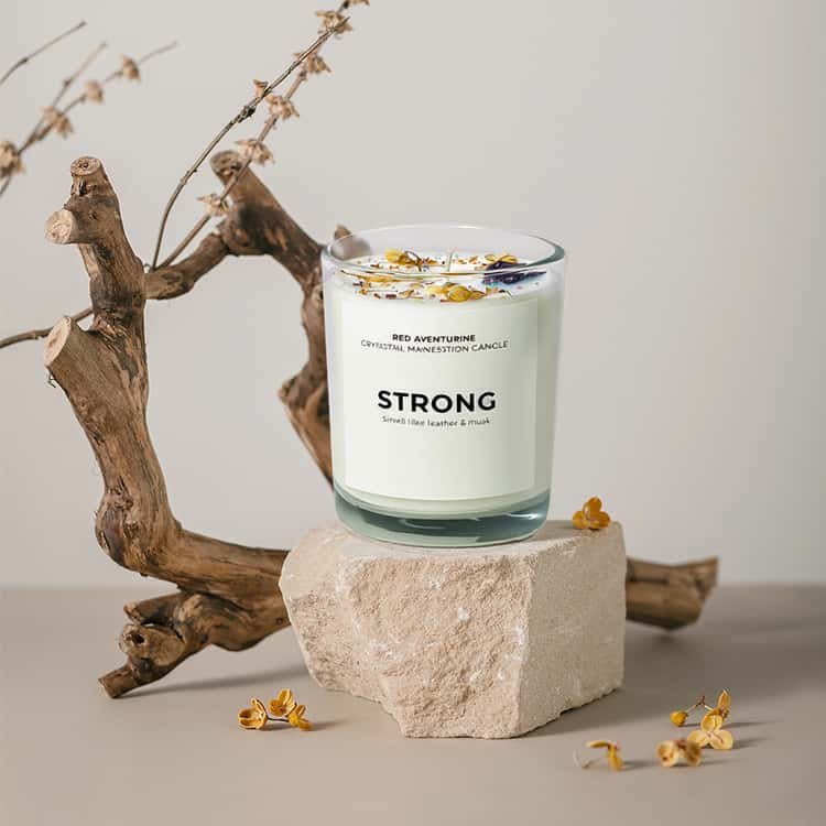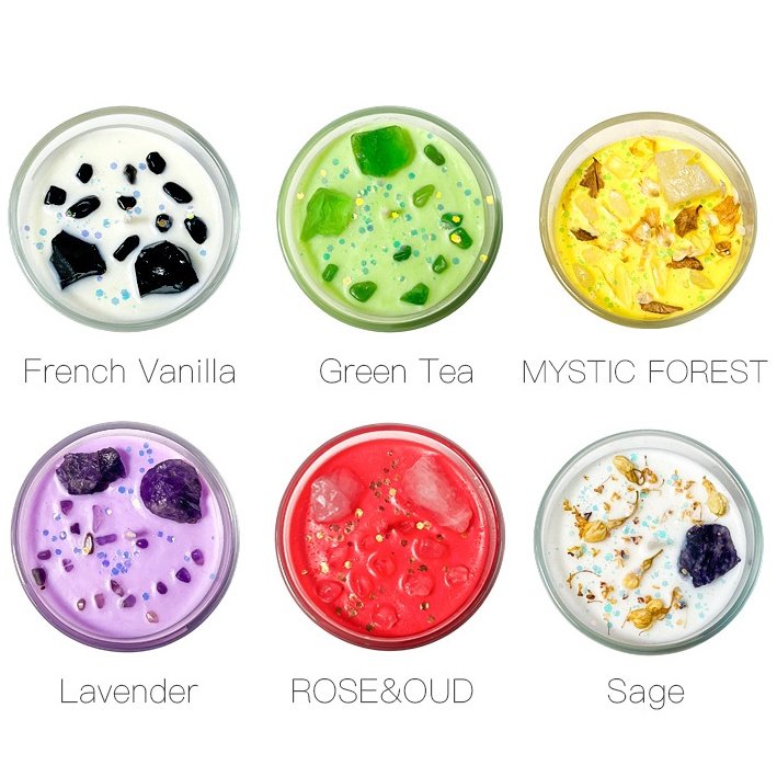 Every candle is thoughtfully adorned with natural crystals and dried flowers. This creates vibrant, layered visuals and a uniquely romantic appeal.