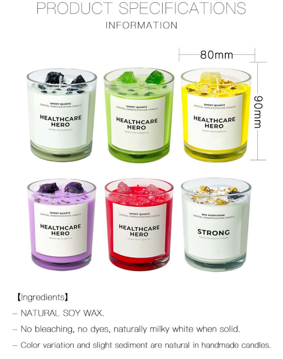 - Wax Base Material:Soy wax
